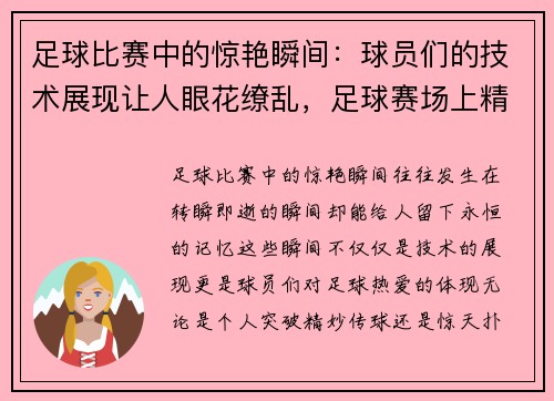 足球比赛中的惊艳瞬间,往往发生在转瞬即逝...
