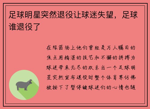 在绿茵场上,他们曾经是万人瞩目的焦点,用...