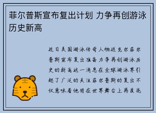 近日,美国游泳传奇人物迈克尔·菲尔普斯宣...