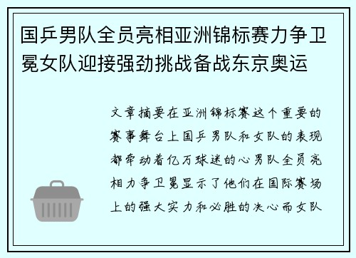 文章摘要:在亚洲锦标赛这个重要的赛事舞台...