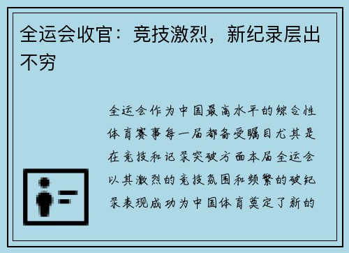 全运会作为中国最高水平的综合性体育赛事,...