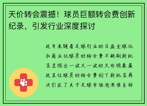 近年来,随着足球行业的日益全球化和商业化...