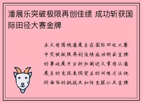 本文将围绕潘展乐在国际田径大赛中突破极限...