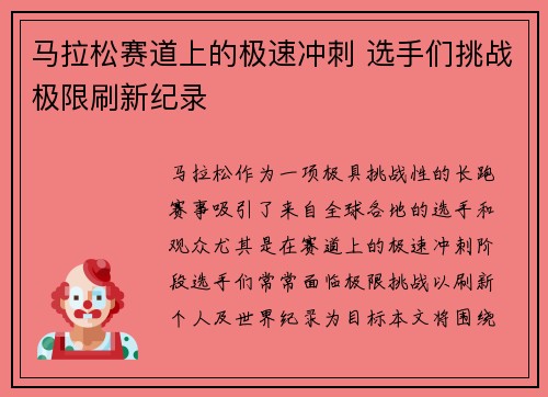 马拉松作为一项极具挑战性的长跑赛事,吸引...