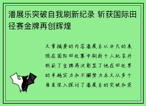文章摘要的内容:潘展乐以非凡的表现,在国...