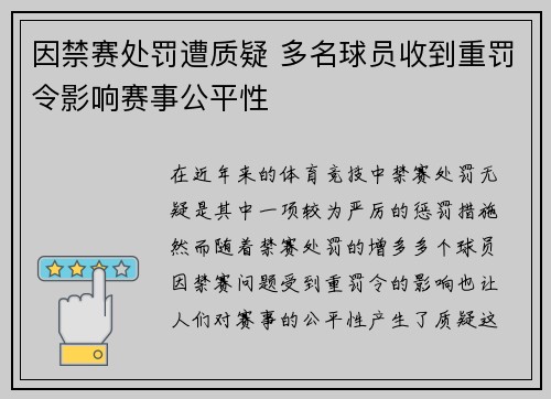 在近年来的体育竞技中,禁赛处罚无疑是其中...