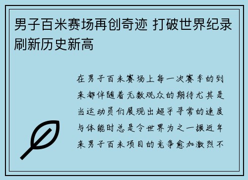 在男子百米赛场上,每一次赛季的到来都伴随...