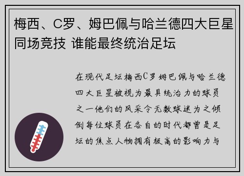 在现代足坛,梅西、C罗、姆巴佩与哈兰德四...