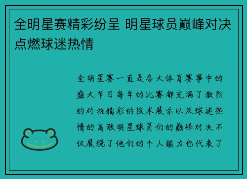 全明星赛一直是各大体育赛事中的盛大节日,...