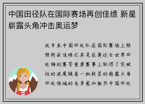 近年来,中国田径队在国际赛场上频频斩获佳...