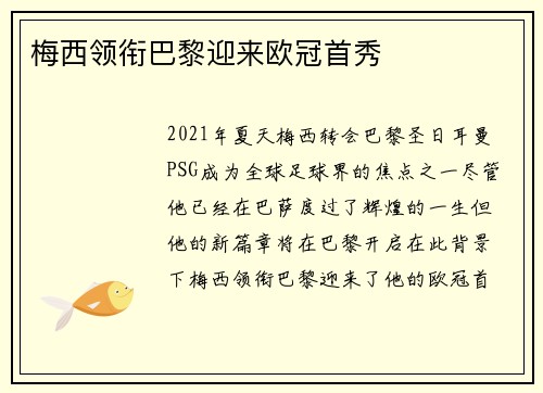 2021年夏天,梅西转会巴黎圣日耳曼(P...