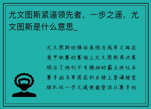 尤文图斯的强劲表现与冠军之路 在意甲联赛...