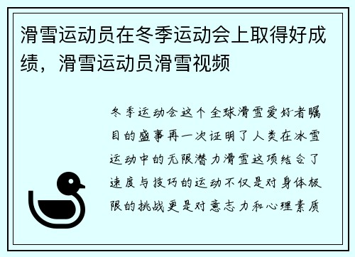 冬季运动会,这个全球滑雪爱好者瞩目的盛事...