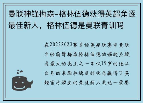 在2022-2023赛季的英超联赛中,曼...