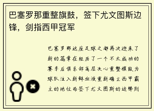 巴塞罗那,这座足球之都,再次迎来了新的篇...