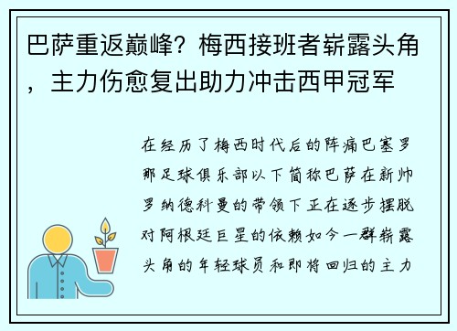 在经历了梅西时代后的阵痛,巴塞罗那足球俱...