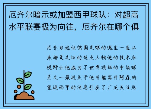 厄齐尔,这位德国足球的瑰宝,一直以来都是...