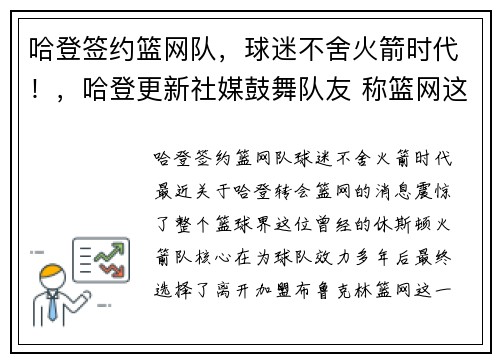 哈登签约篮网队,球迷不舍火箭时代! 最近...