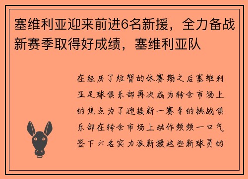 在经历了短暂的休赛期之后,塞维利亚足球俱...