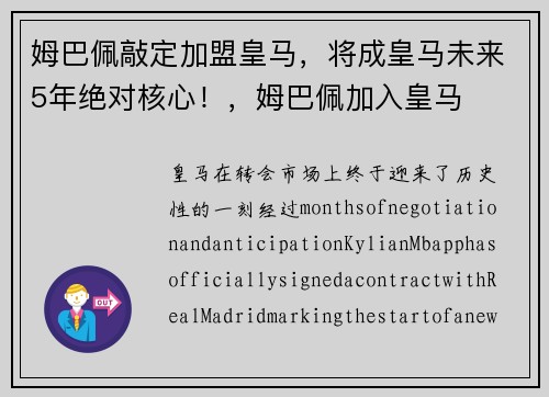 皇马在转会市场上终于迎来了历史性的一刻!...